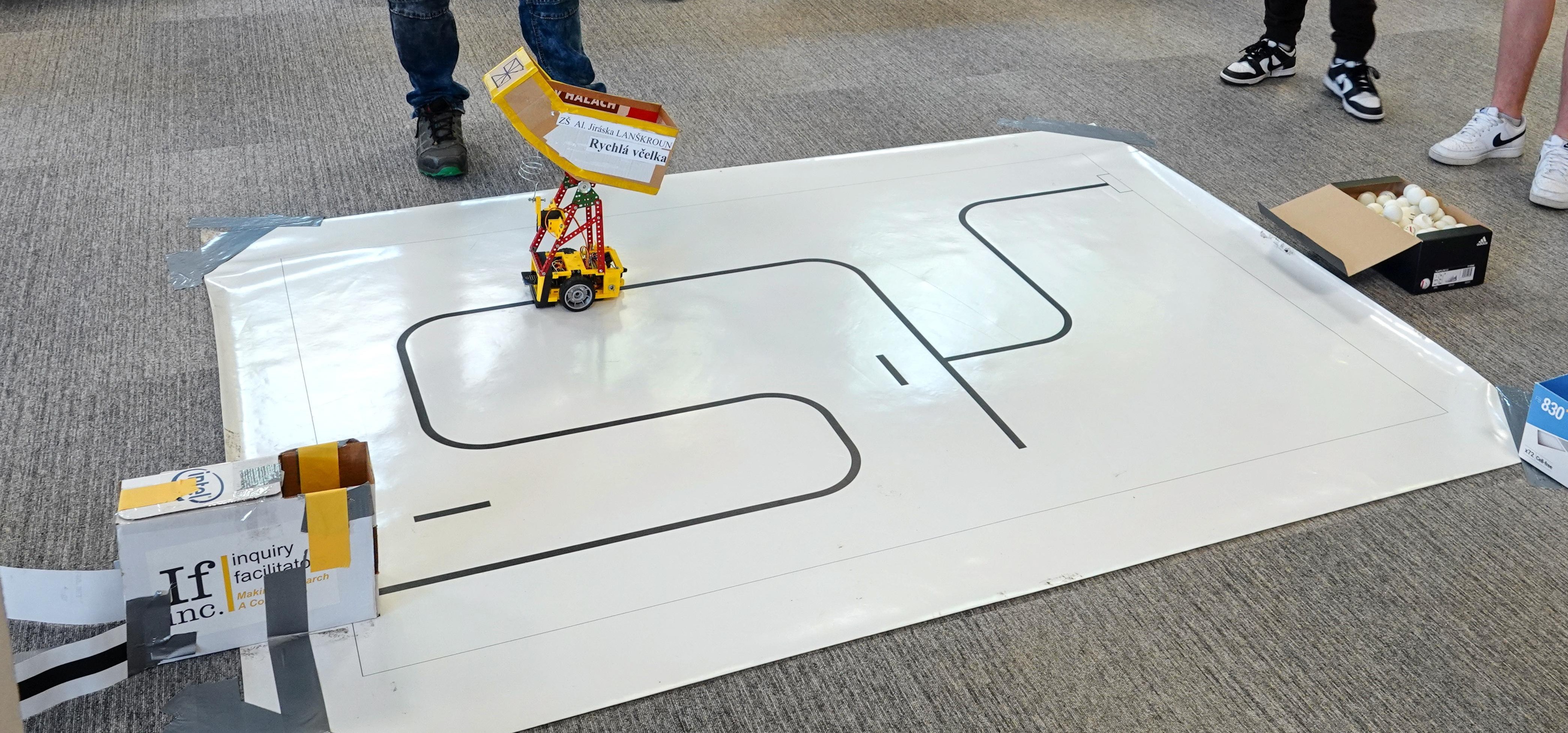 Do robota jsou před startem vsypány ping-pongové míčky. Úkolem robota je přenést tyto míčky po čáře a vysypat je do věže. Více informací naleznete v zadání.