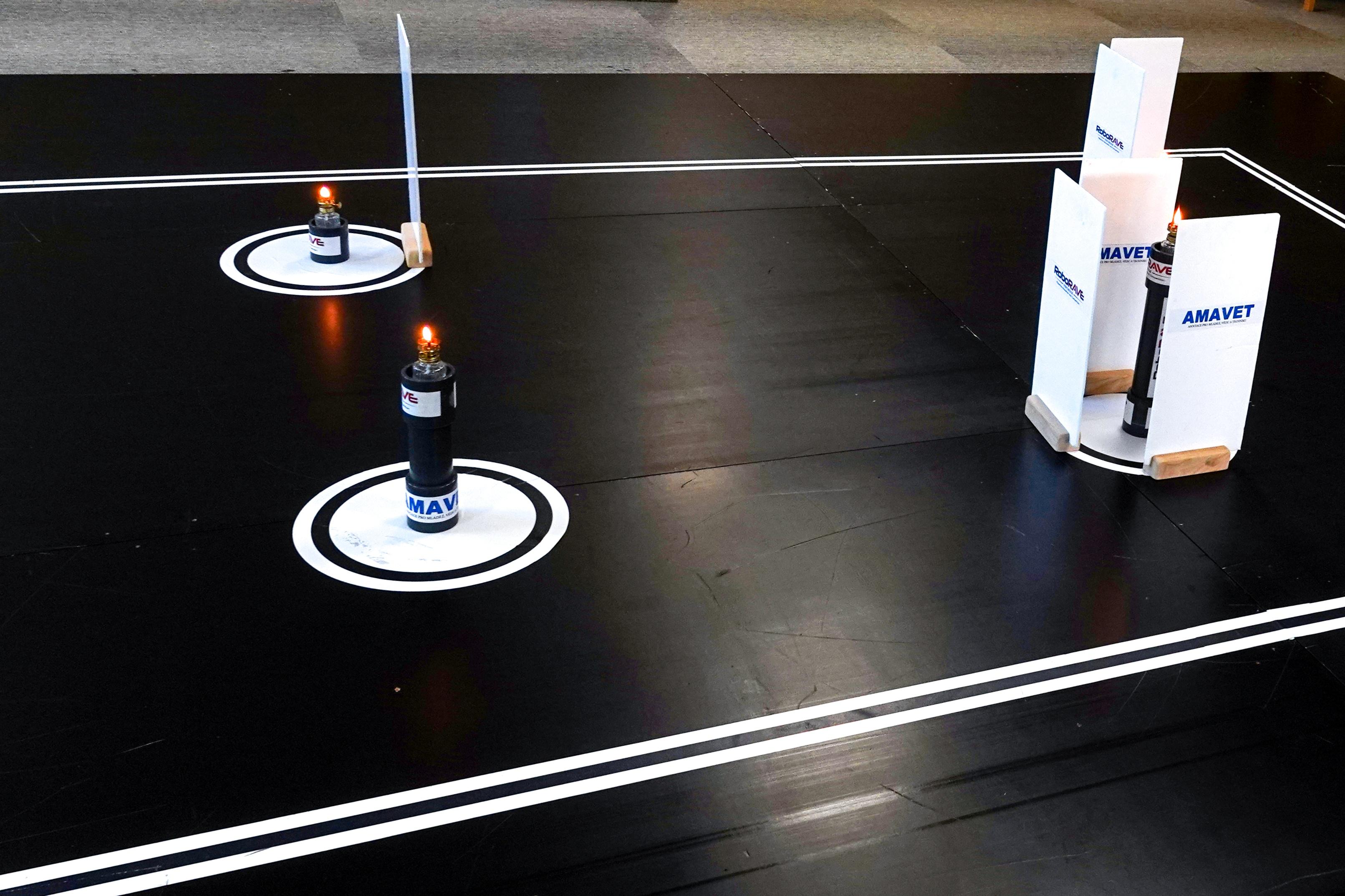 Robot je postaven na náhodný kraj na náhodném hřisti se čtyřmi svíčkami a několika stěnami. Úkolem robota je zhasnout všechny svíčky ve stanoveném časovém limitu. Přitom nesmí žádnou svíčku ani stěnu zbořit. Více informací naleznete v zadání.