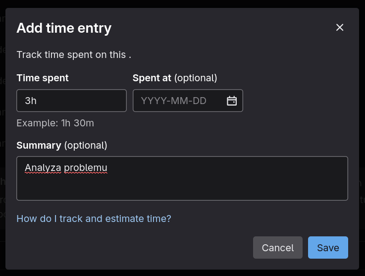 Pokud chcete přidat čas strávený nad konkrétním issue,